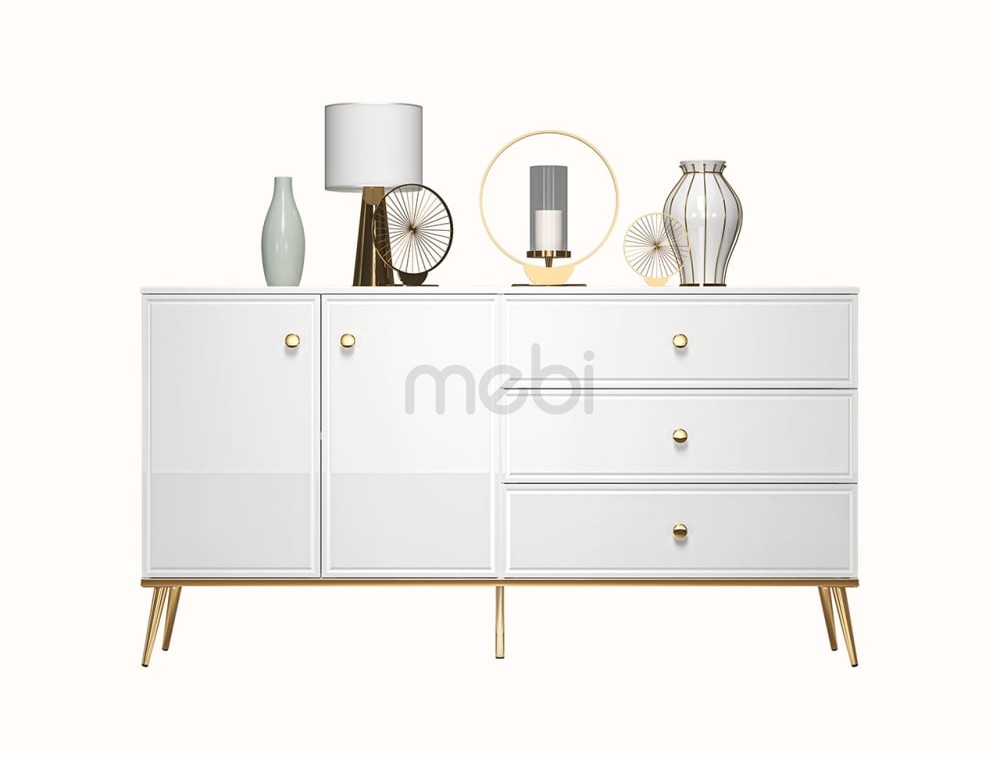 Ви шукаєте приголомшливі, але сучасні меблі для своєї вітальні чи спальні? Ви потрапили в потрібне місце! Знайомтеся з колекцією Goldin, яка поєднує в собі надзвичайну елегантність і практичність. Ця стильна колекція виготовлена з матеріалів найвищої якості. Фронтали і стільниці виготовлені з міцної плити МДФ, а ніжки і ручки - з металу. І шафи, і ящики оснащені механізмами безшумного закривання, які забезпечують плавне і безшумне закривання дверей. Щоб ще більше підкреслити чарівність виробів Goldin, виробник оснастив їх підсвічуванням, яке є стандартним. Меблі Goldin - це поєднання 3 кольорів. альпійський білий, білий глянець і золоті вставки. Вони створюють унікальність колекції, оскільки ідеально поєднуються зі світлими формами меблів, надаючи їм престижного вигляду. Колекція включає в себе меблі як для спальні, так і для вітальні, включаючи такі вироби як: дводверна шафа, висока шафа-вітрина, шафа-вітрина з шафами, однодверний або дводверний комод, тумба під телевізор. , тумбочка, журнальний столик і настінна полиця.