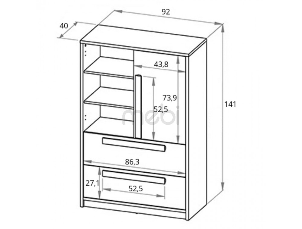 - Комод 1-дверний з 2 ящиками та книжковою шафою