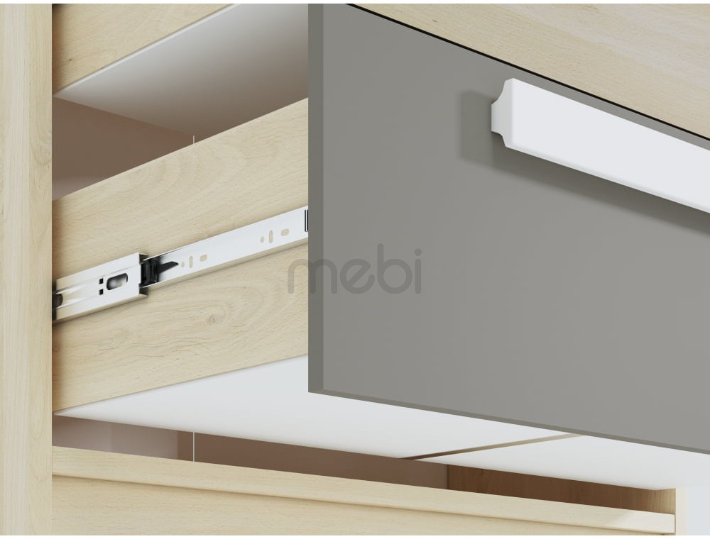 Завдяки комоду Drop інтер’єр набуває функціональності, додаючи приміщенню нотку сучасності. Меблі ідеально підійдуть для підліткової кімнати, а можливість вибрати колір однієї з фасадів дозволить підлаштувати зовнішній вигляд виробу під уподобання власника. Міцна конструкція з ламінованої дошки з протиударними властивостями забезпечує тривалий термін служби меблів. Білі дерев'яні ручки є цікавим декоративним акцентом, одночасно забезпечуючи комфортне користування вмістом меблів. Шухляди з посиленим дном і повним висуванням дозволять зберігати багато різних предметів, їх легше витягувати і ховати.