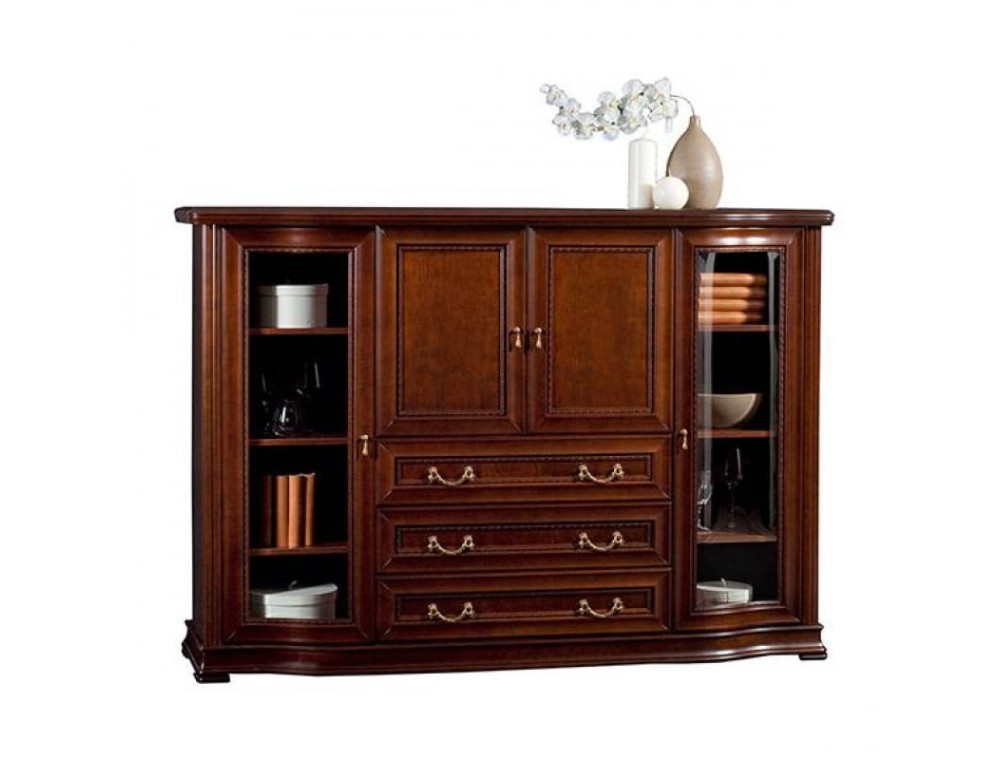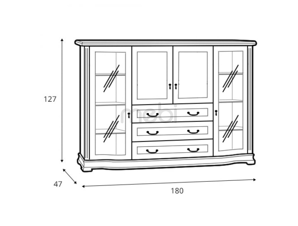 Стильний інтер'єр не обійдеться без комода Ingmar від Latzke. Добре організований внутрішній простір меблів дозволяє зручно зберігати не тільки аксесуари для дому, а й декорації та прикраси, які чудово демонструються за скляним фасадом і підсвічуються. Комод Ingmar уособлює класичну елегантність, засновану на численних різьблених деталях і вишуканих ручках. Завдяки міцній конструкції з натуральних матеріалів меблі є чудовою інвестицією на довгі роки.
