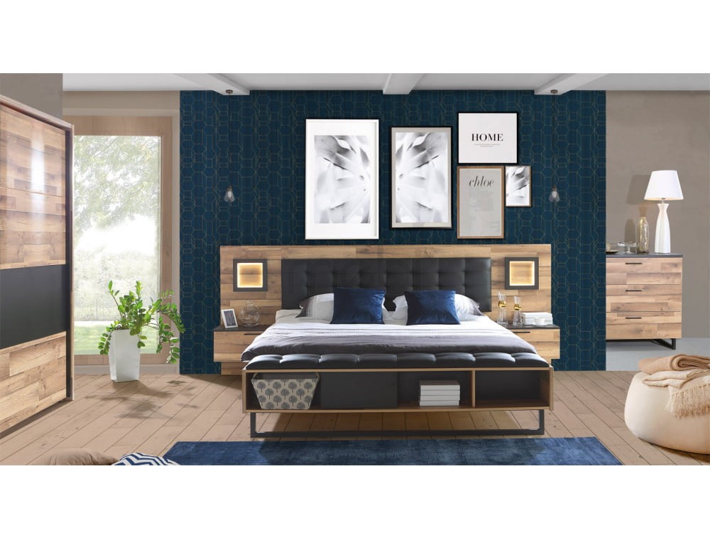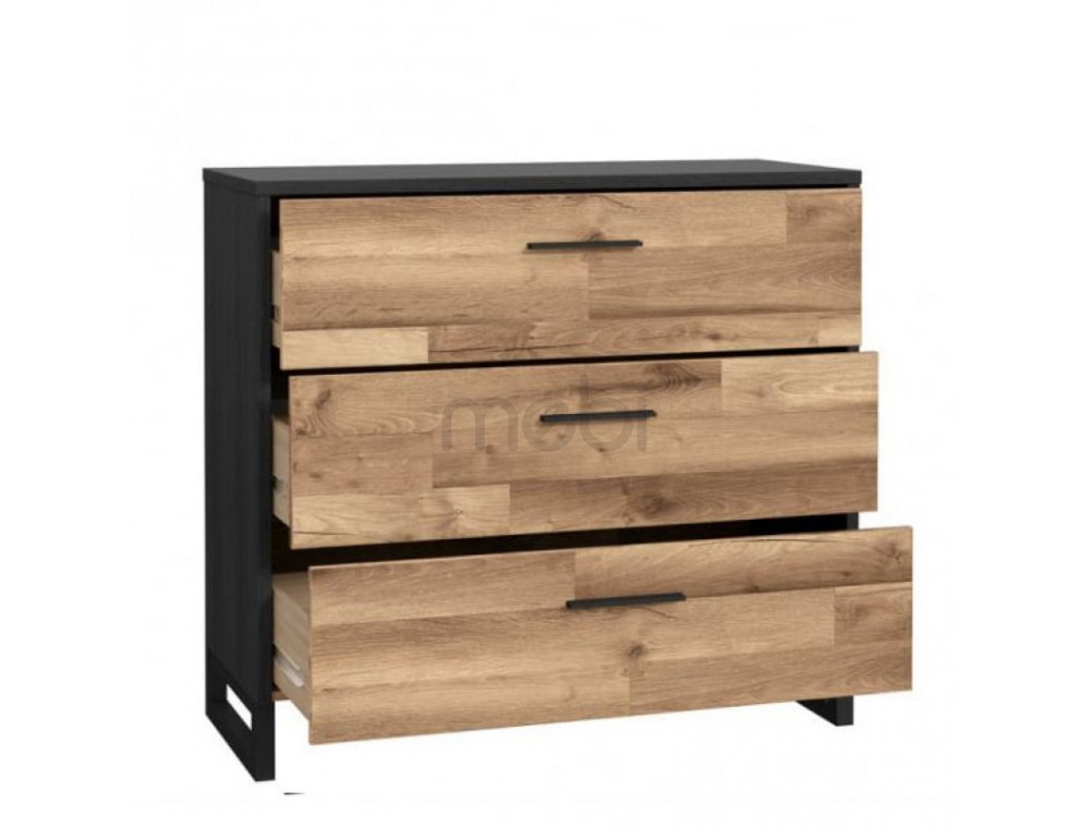 Комод Jacobin від Forte з незвичайною обробкою буде чудово виглядати в сучасній спальні. Цей предмет меблів є цінною пропозицією, оскільки, з одного боку, він дозволить зберігати багато речей у 3 містких ящиках і на стільниці. З іншого боку, він виглядає надзвичайно оригінально, що в основному завдяки геометричним, металевим ніжкам промислової форми в поєднанні з красивими кольорами. Поєднання чорного кольору з декором з деревини дуба створює по-справжньому ефектний варіант. Висока якість виготовлення дозволить вам насолоджуватися функціональністю комода Jacobin протягом багатьох років.