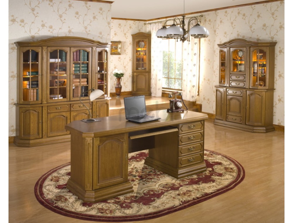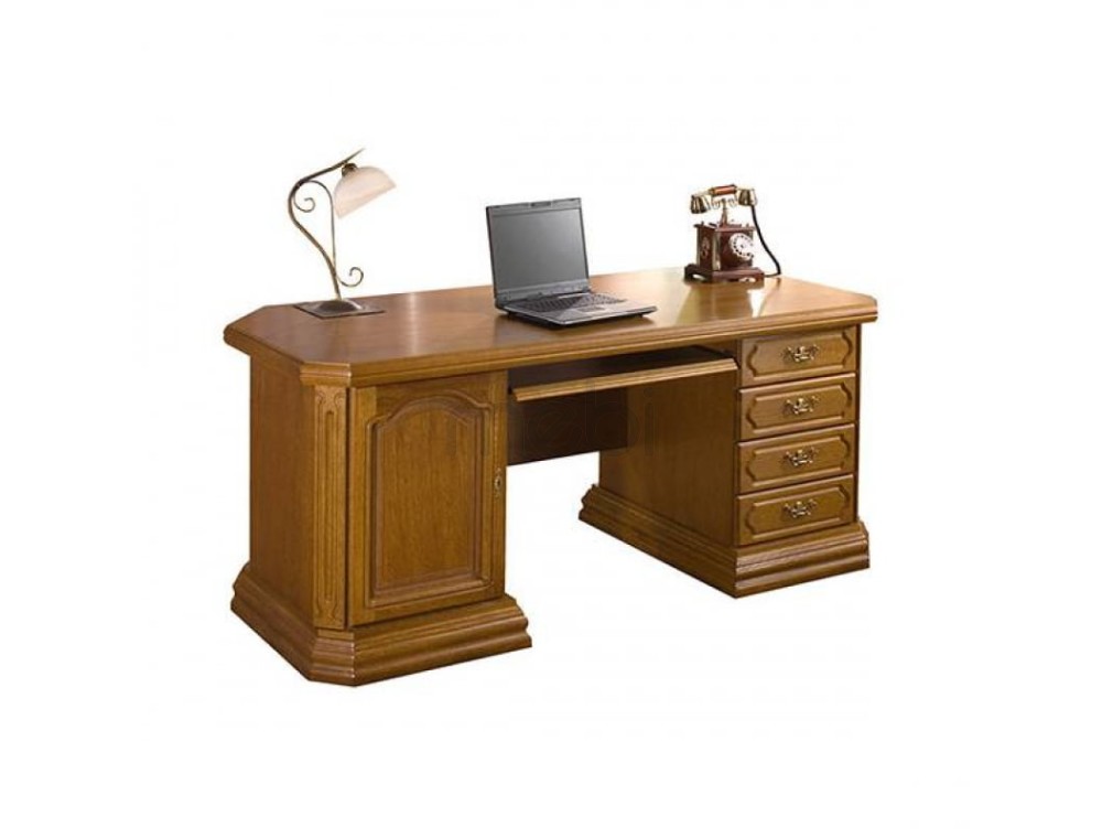 Ви шукаєте предмет меблів, який ідеально доповнить елегантний простір вашого офісу? Письмовий стіл Norman від Latzke – правильне рішення для вас. Ідеально підібрані прикраси - різьблення на фасадах, рамах, краях і унікальні ручки створюють гарний предмет меблів з високою естетичною цінністю. Письмовий стіл Norman зробить вашу повсякденну роботу приємною та комфортною, адже під стільницею ви знайдете практичну шафу, ящики та полицю, тобто достатньо місця для організації канцелярського приладдя та документів. Меблі також здобудуть ваше визнання завдяки міцній конструкції з дерева та натурального шпону.