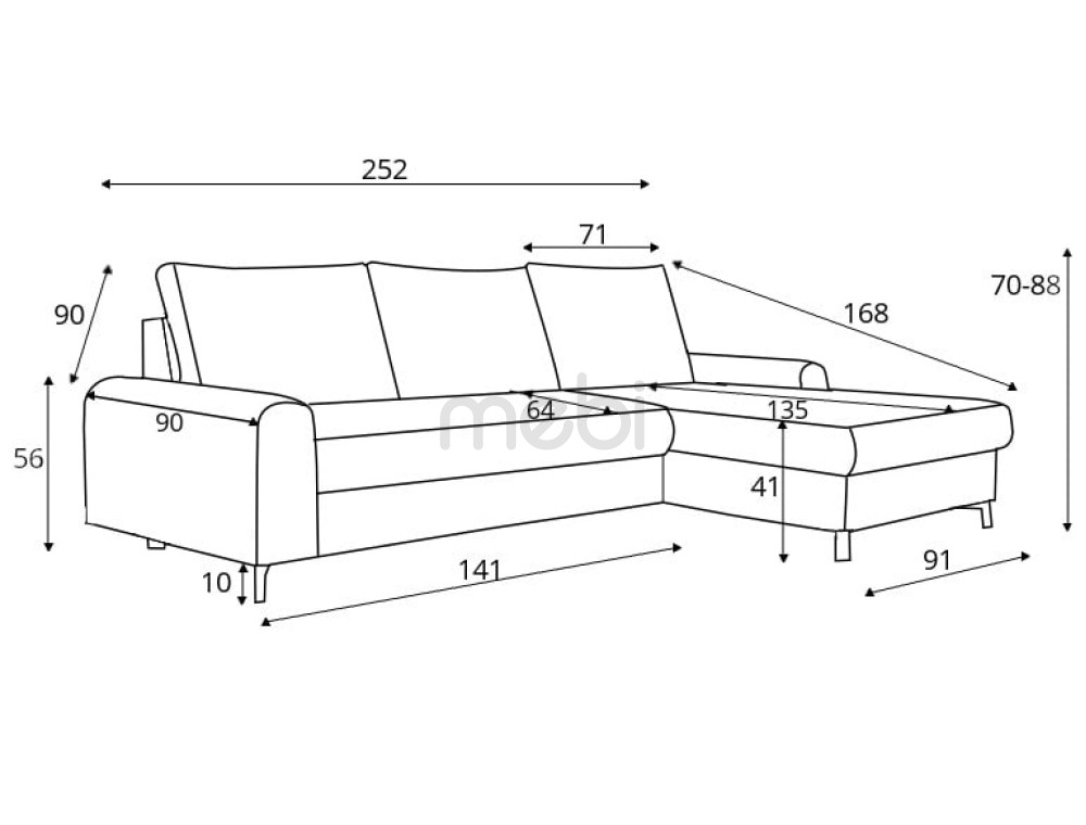 Правий кутовий диван з контейнером та функцією сну Akira Meble Laski 252x70x168 (AKIRA_PRAWY) 142087