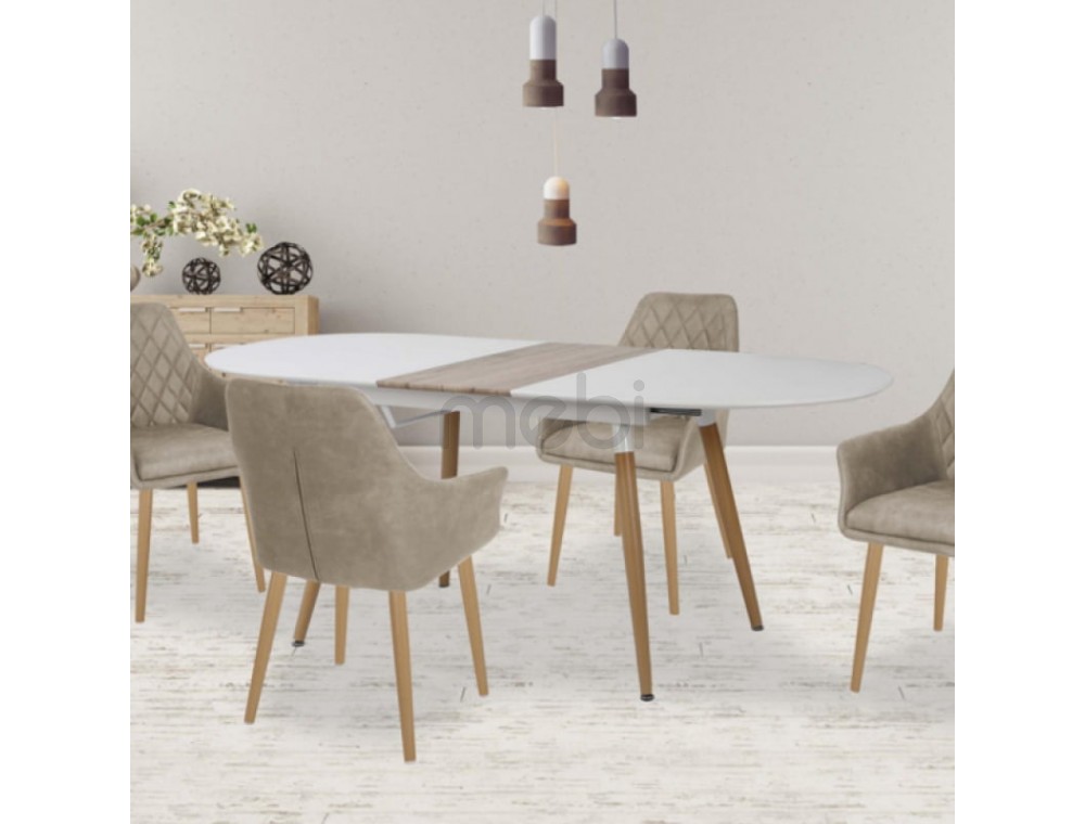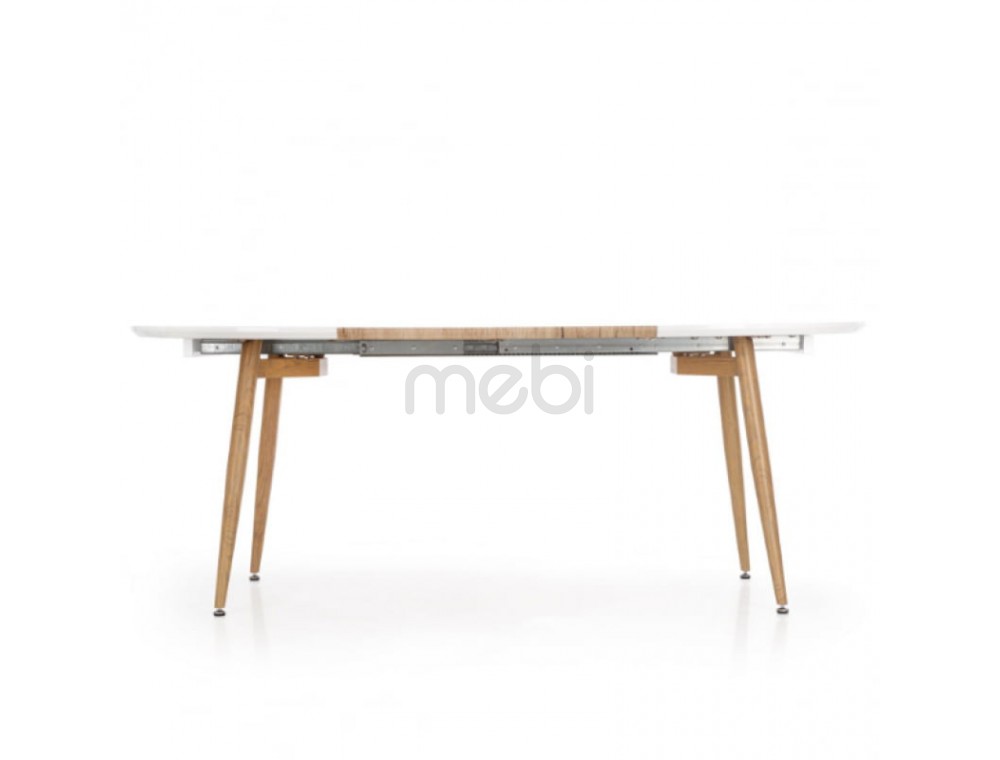 У маленькій квартирі найкращий спосіб зберегти вільний простір – це розумно його використовувати. Тому, облаштовуючи маленьку їдальню, варто оснастити її столом Calibre від Halmar. Це ідеальне рішення для невеликої сім'ї, яка часто приймає гостей. Для повсякденного використання достатньо базового варіанту стільниці. Однак при необхідності ви можете збільшити поверхню столу додатковою вставкою. Простий мінімалістичний дизайн з дубовими ніжками і білим матовим верхом ідеально впишеться в будь-який інтер'єр!