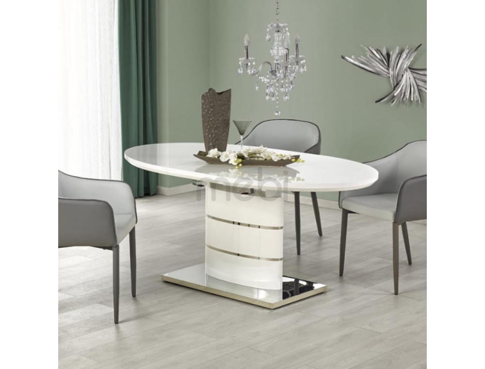 Шукаєте стіл з дещо іншою версією? Ви орієнтуєтесь на сучасність? Ви не хочете класичний, квадратний чи прямокутний стіл? Тоді стіл Aspen точно виправдає ваші очікування! Має овальний верх, який, головне, розкладається! Його базова довжина становить 140 см, але додаткова вставка може збільшити її до 180 см. Вічний білий колір підкреслюється вставками з нержавіючої сталі, які чудово відбивають світло. Стіл Aspen - це поєднання сучасності, надійної роботи та красивого зовнішнього вигляду, що зводиться до ідеальної суміші!