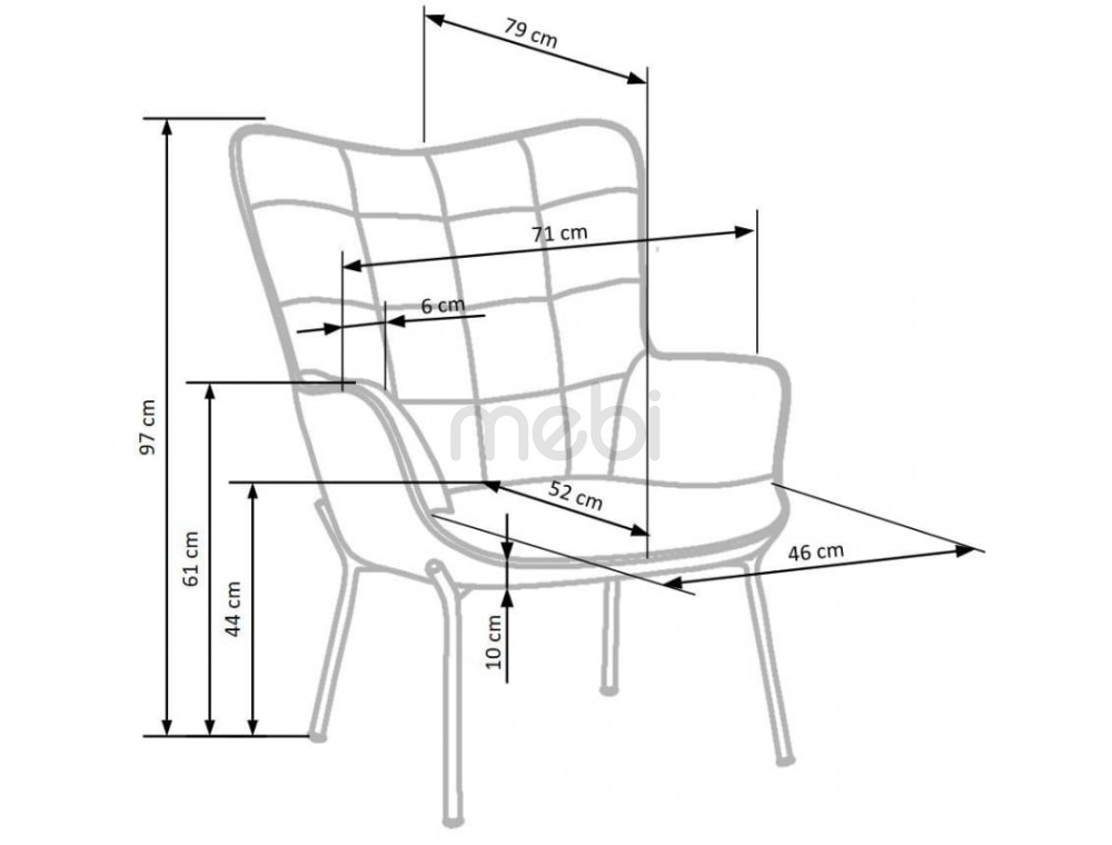 Крісло Castel - унікальний предмет меблів, який забезпечить Вам комфорт і зручність під час відпочинку. Він виготовлений з якісних матеріалів, що робить його міцним і стійким до пошкоджень. Крісло має жорстку спинку і сидіння, які забезпечують оптимальний рівень підтримки спини і шиї. Крім того, крісло має стильні хромовані ніжки, які надають йому унікального характеру. Крісло легко підтримувати в чистоті, а його оббивка стійка до забруднень. Крісло Castel - ідеальне рішення для людей, які цінують комфорт. Це предмет меблів, який прослужить вам багато років і забезпечить відпочинок і відпочинок.