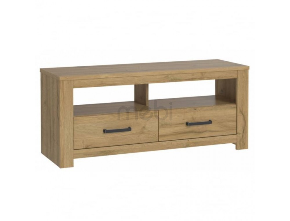 Облаштовуючи телевізійний куточок у вітальні, не можна забувати про тумбу під телевізор, яка забезпечує відповідну опору для телевізора. Тому ідеально підійде той із колекції Havanna від Forte. Виготовлена з високоякісного меблевого щита, покритого плівкою, що захищає від різних пошкоджень. Шафа оснащена 2 висувними ящиками для улюблених фільмів і 2 нішами. Відсутність задньої панелі у відкритих полицях для електронного обладнання полегшує підключення кабелів і дозволяє їх приховати. Колір зістареного дуба ідеально вписується в теплу атмосферу вітальні, що значно полегшує облаштування.