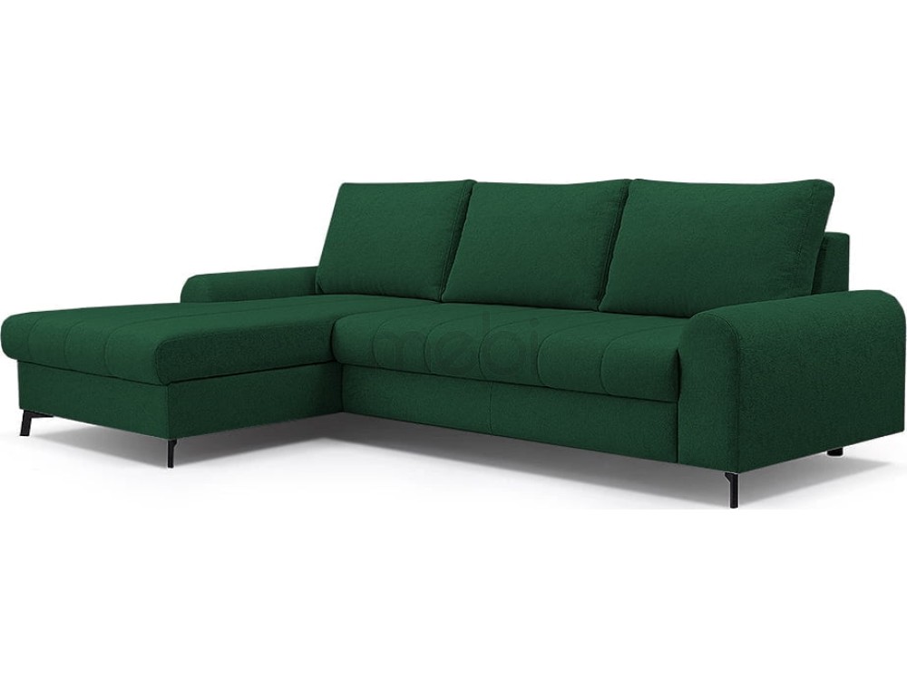 Кутовий диван Akira - це модель з елегантною строчкою, закругленими боками і чорними металевими ніжками. Функція сну в оббивці доступна як опція. Модель має функцію сну і контейнер для постільної білизни. Доступний у лівосторонньому та правосторонньому варіантах.