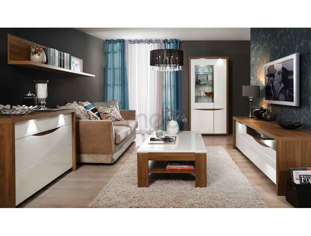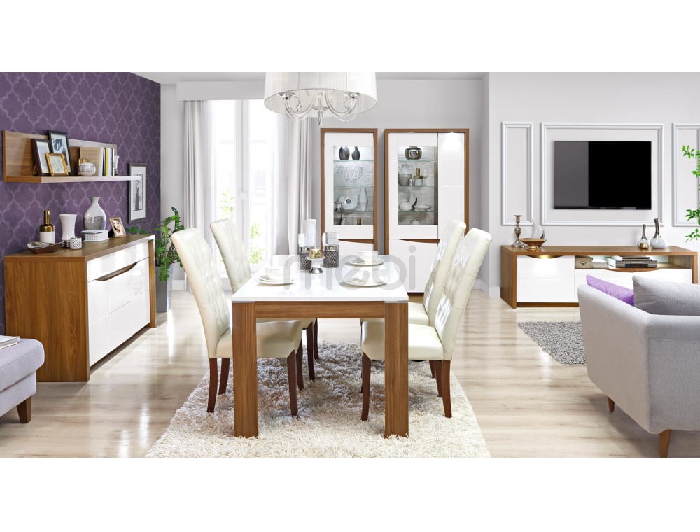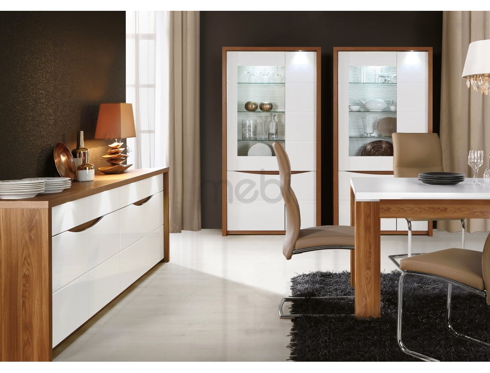 У вас закінчилися ідеї, як урізноманітнити інтер'єр вітальні або їдальні? Сучасний дизайн веб-сайту Saint Tropez дозволить вам змінити його на елегантний і, головне, модний спосіб. Інноваційне поєднання білого лаку та дерев’яного дуба Сангалло – наймодніший колірний дует. Класичну ручку замінено на декоративну фрезеру. Вітрина має частково засклену передню частину, що дозволяє добре висвітлювати інтер'єр. Також точкове освітлення, встановлене на верхньому обідку, тонко підкреслює лінію меблів.